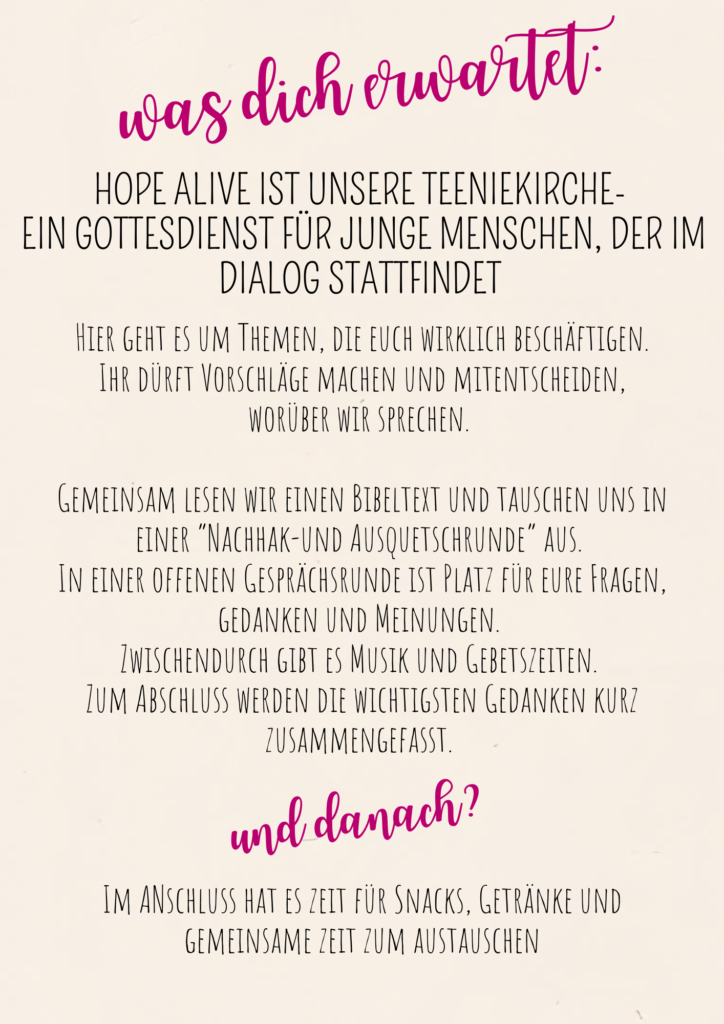 hope alive ist unsere TeenieKirche-